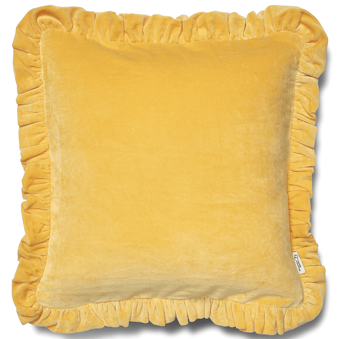 Kuddfodral i sammet med kant i volang! Denna lyxiga sammetskudde är en perfekt kombination av stil och komfort. Kudden är tillverkad av högkvalitativt bomull och har en elegant, gul nyans som tillför en sofistikerad touch till vilket rum som helst. Storlek; 50 x 50 cm. Innerkudde säljs separat.