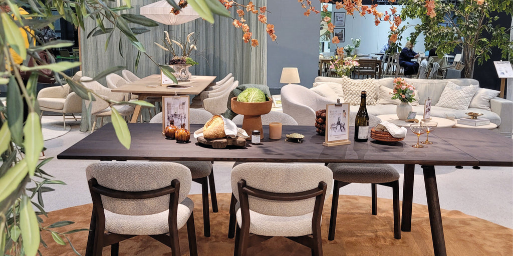 Mustiga accentfärger i fin kontrast till ljusa tyger med mörkt eller ljust trä präglade årets MIBO-mässa! Här är en bild från Rowico´s monter med nytt matbord och stolar som är på väg in i butiken OCH i bakgrunden skymtar Rowico´s nya, ursköna soffa med dunstoppning och avtagbart överdrag. Överdrag säljs även separat så att du kan växla mellan olika klädslar! I butik inom kort!